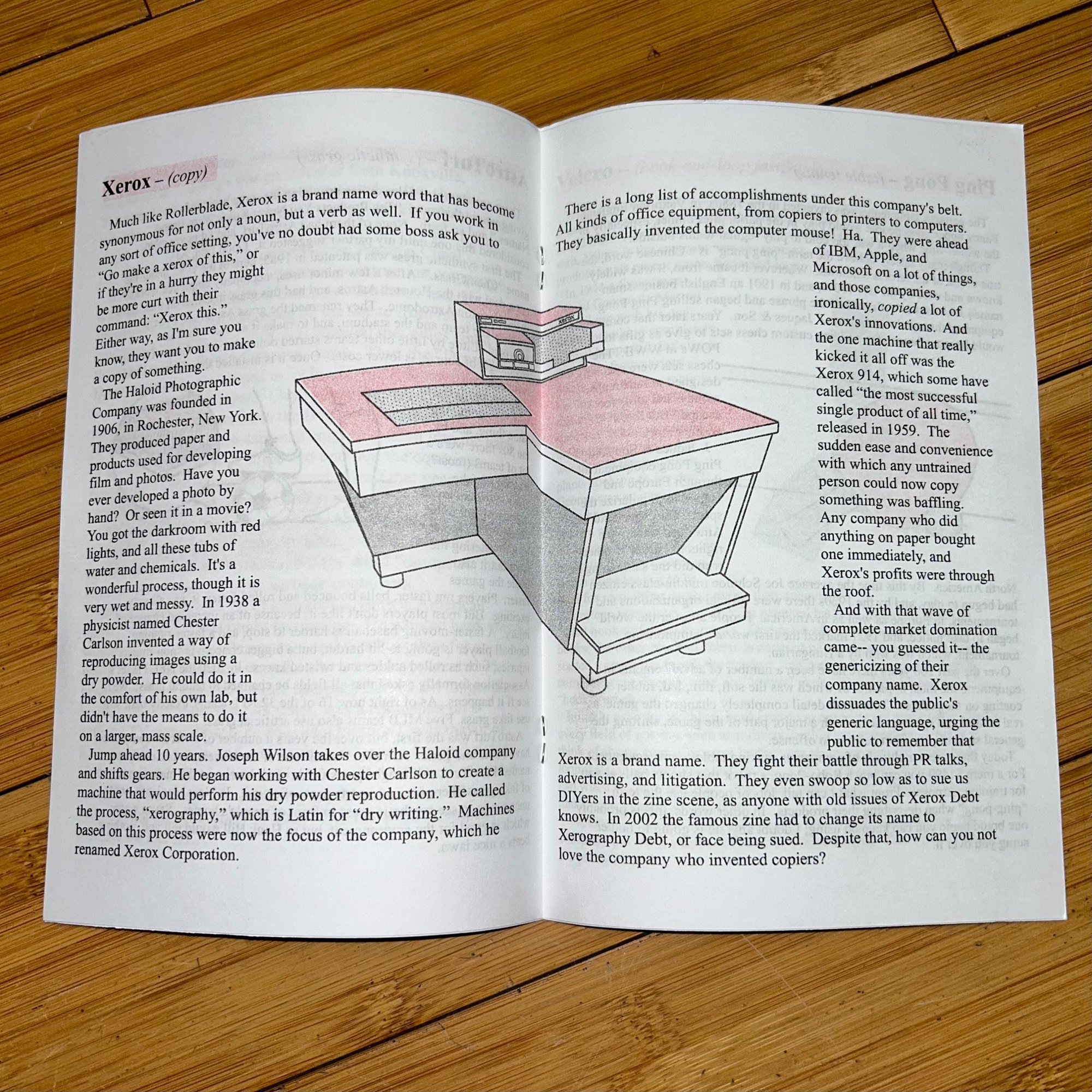 “When my nose starts to feel a bit drippy, I instinctively ask anyone in the room if they have a Kleenex....” writes author Billy McCall. You know how we do that thing where you call all facial tissues ‘Kleenex’ even if it’s a paper towel or rag? Well, this zine is for you! Learn how you’re calling things wrong.
