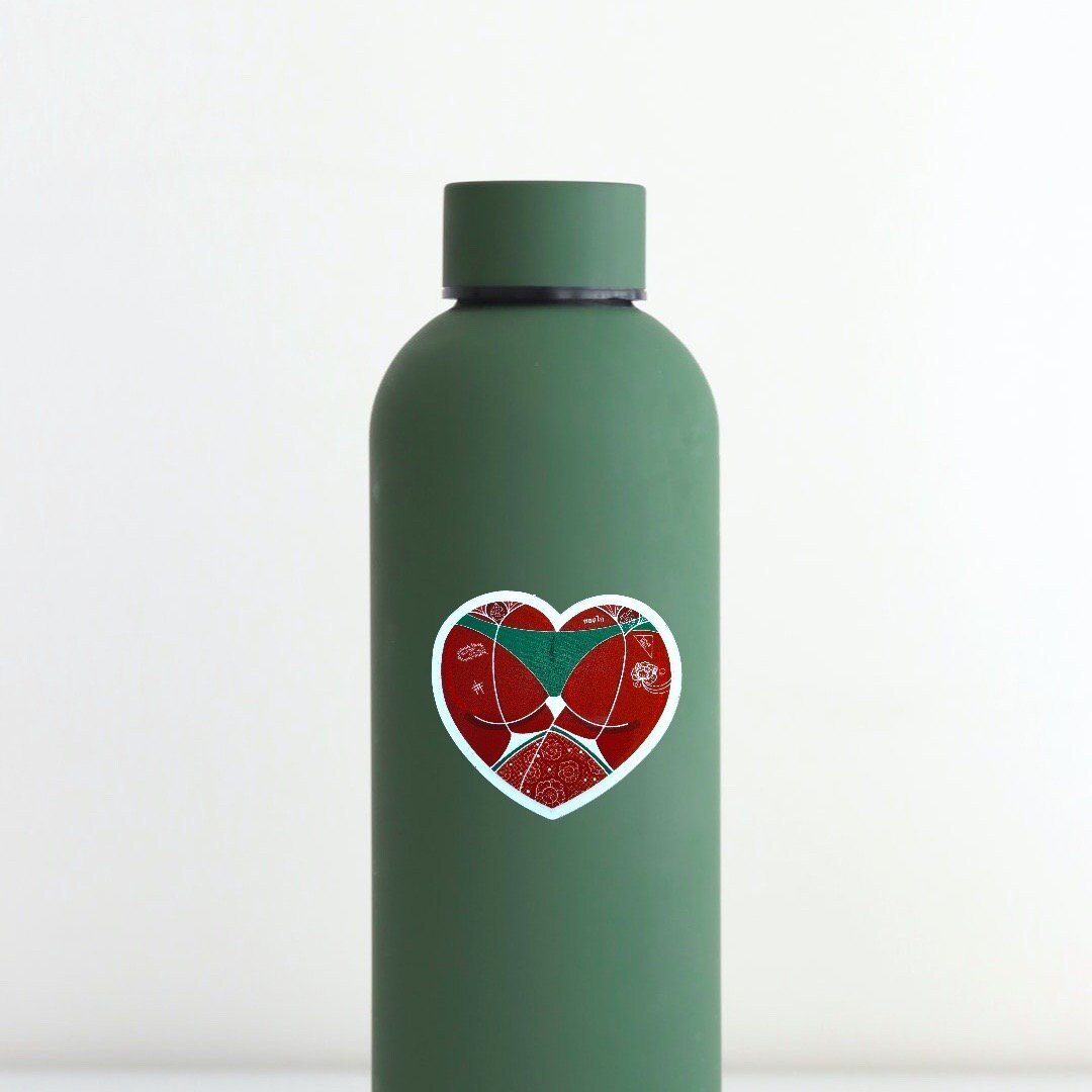 A hot af sriracha booty heart! The design features elements of the bottle as well as a flower motif. This sticker is glossy with a white background. Sticker is approximately 2.5x2.