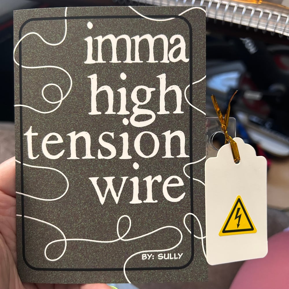 “imma high tension wire” is my first perzine, a very personal story of my life as a late diagnosed AuDHD lil guy who struggles with noises, connection, and having a stable sense of self. Intersperced with my own original art and written as a way to explain my existence and daily struggles to my family, I hope this helps other people like myself feels seen.