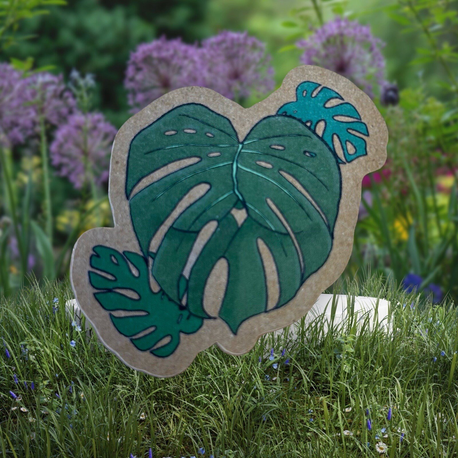 This is a Kraft paper sticker design of a booty ever so slightly designed to be disguised as a monstera leaf.