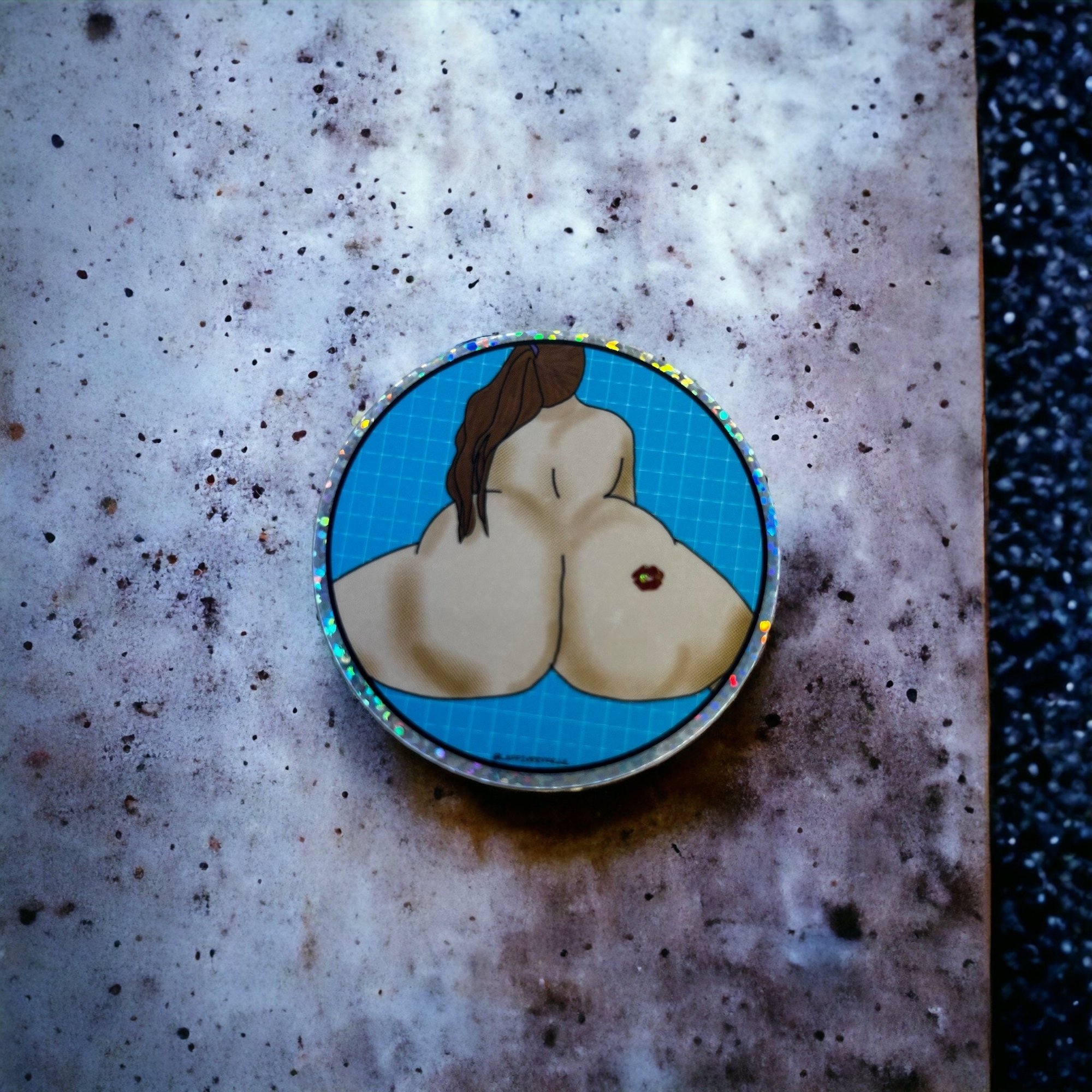 This beautiful behind view butt sticker measures roughly 2.5x2.5” and is printed on glitter vinyl material. Stickers are durable and perfect for phone cases, water bottles, notebooks, and anything needing a cute butt!